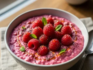 Nocna różowa owsianka z malinami