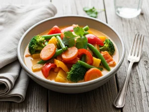 Warzywa w sosie orzechowym z ryżem (z osłoną noża miksującego 2.0)