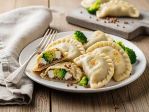Pierogi z kaszą gryczaną, brokułami i twarogiem