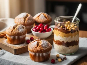 Muffiny piernikowe i nocna owsianka z masłem orzechowym i kakao