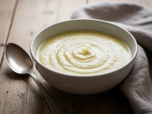- Dodać rozdrobniony wcześniej kalafior, pozostałe 15 g oliwy, 1 łyżeczkę soli, ¼-½ łyżeczki pieprzu i mleko, podgrzewać20 min/90°C/obr. 1.
