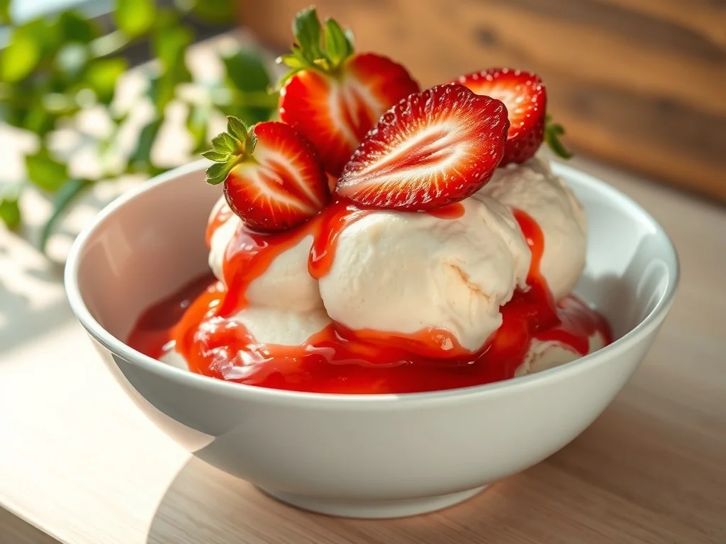 4. Założyć motylek. Dodać jogurt, dodać cukier i cukier waniliowy, wymieszać30 s/obr. 3. Przełożyć do przygotowanego pojemnika do mrożenia. Na wierzchu ułożyć pokrojone truskawki. Odstawić do zamrażalnika na ok. 6 godz. Mrożony deser z krojonymi truskawkami przed podaniem pokroić na kawałki.
