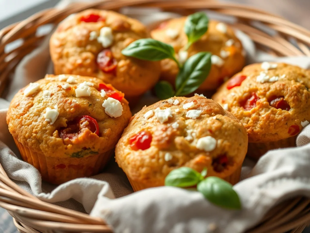 7. Muffinki pomidorowe z serem feta podawać na ciepło lub po ostudzeniu.