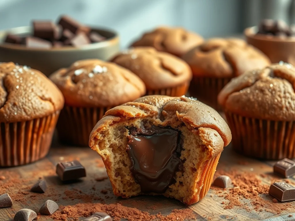- Muffinki z nadzieniem czekoladowym podawać jako deser.