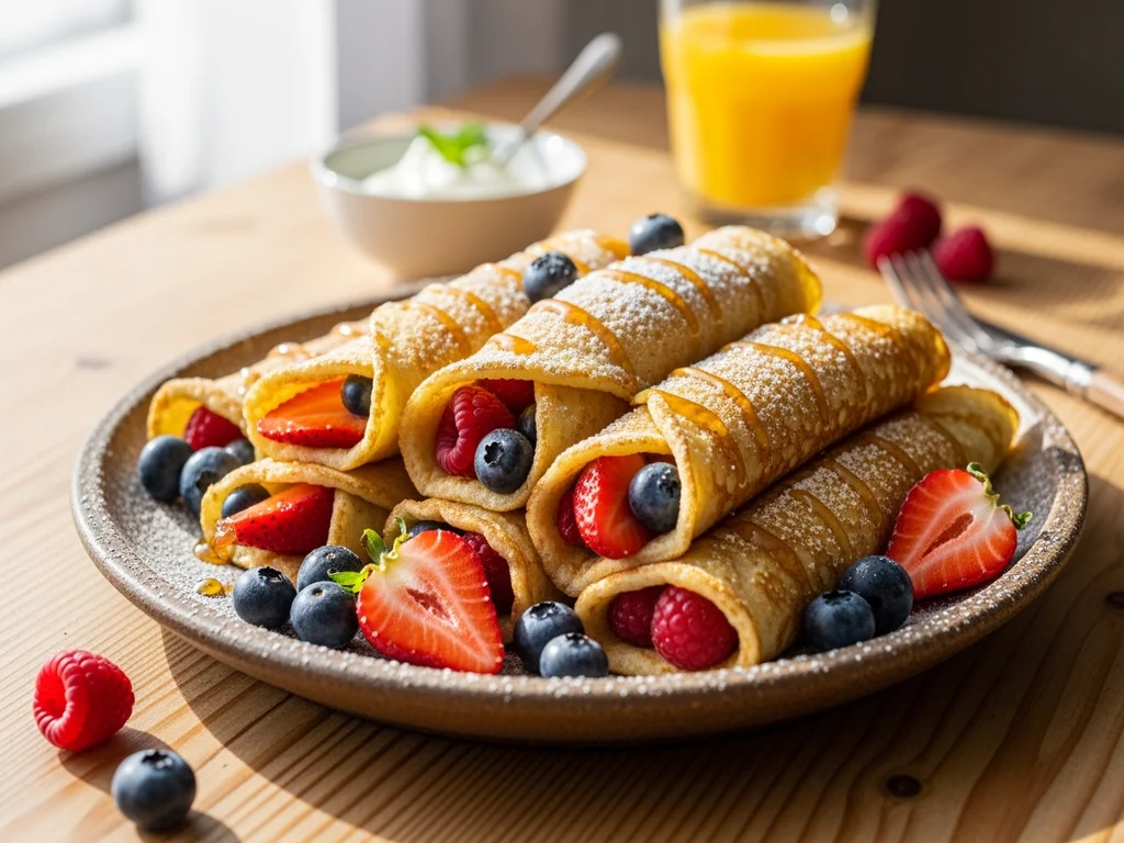 2. Na kuchence, na nieprzywierającej patelni rozgrzać olej. Ciasto na naleśniki wlewać chochelką porcjami na patelnię i obracać nią tak, aby ciasto cienką warstwą pokryło dno. Smażyć na średniej mocy palnika ok. 1 min. Gdy ciasto się zetnie, delikatnie obrócić naleśnik na drugą stronę i smażyć kolejne 30 s. W ten sam sposób usmażyć pozostałe naleśniki. Przed smażeniem każdego naleśnika przemieszać ciasto łyżką. Naleśniki z mąki ryżowej podawać bezpośrednio po przygotowaniu z wybranymi dodatkami.