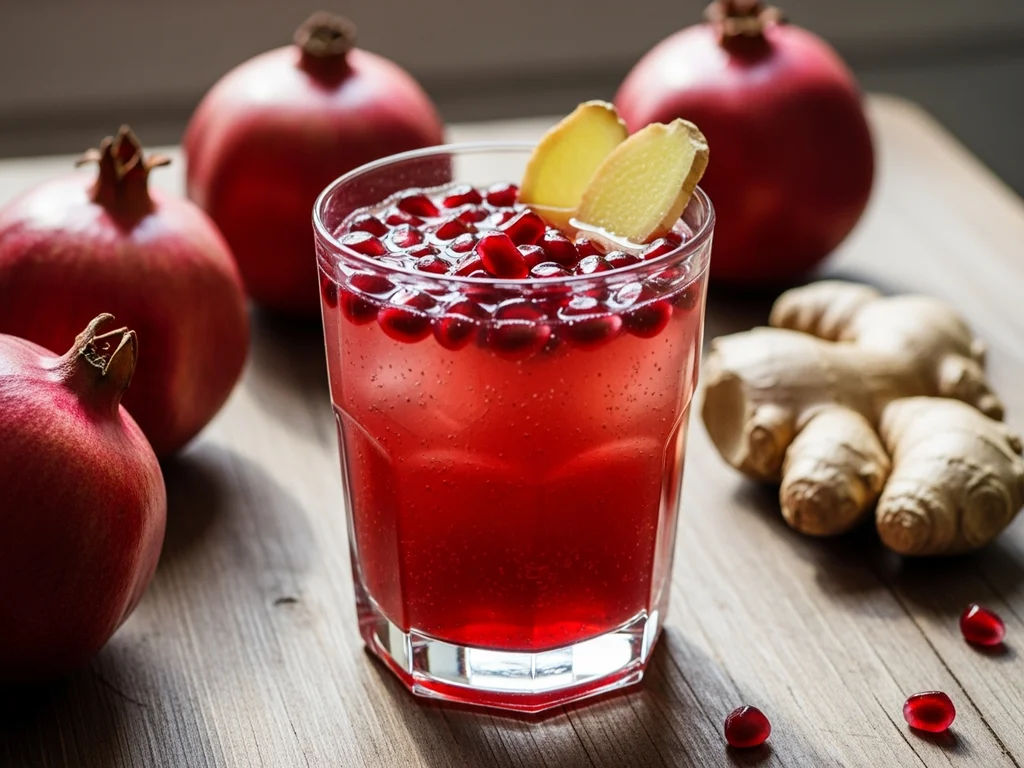 - Napój z granatu i imbiru podawać z lodem bezpośrednio po przygotowaniu, udekorowany listkami mięty.