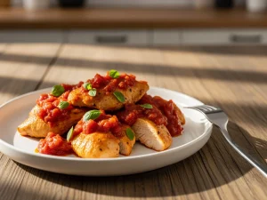 • g filetów z piersi kurczaka, bez skóry pokrojonych na kawałki