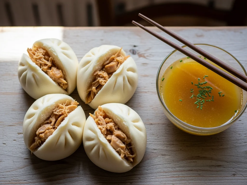 Orientalne bułeczki na parze z mięsem drobiowym z rosołu