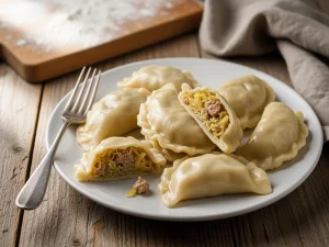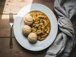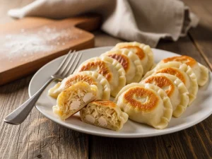 Orientalne bułeczki na parze z mięsem drobiowym z rosołu