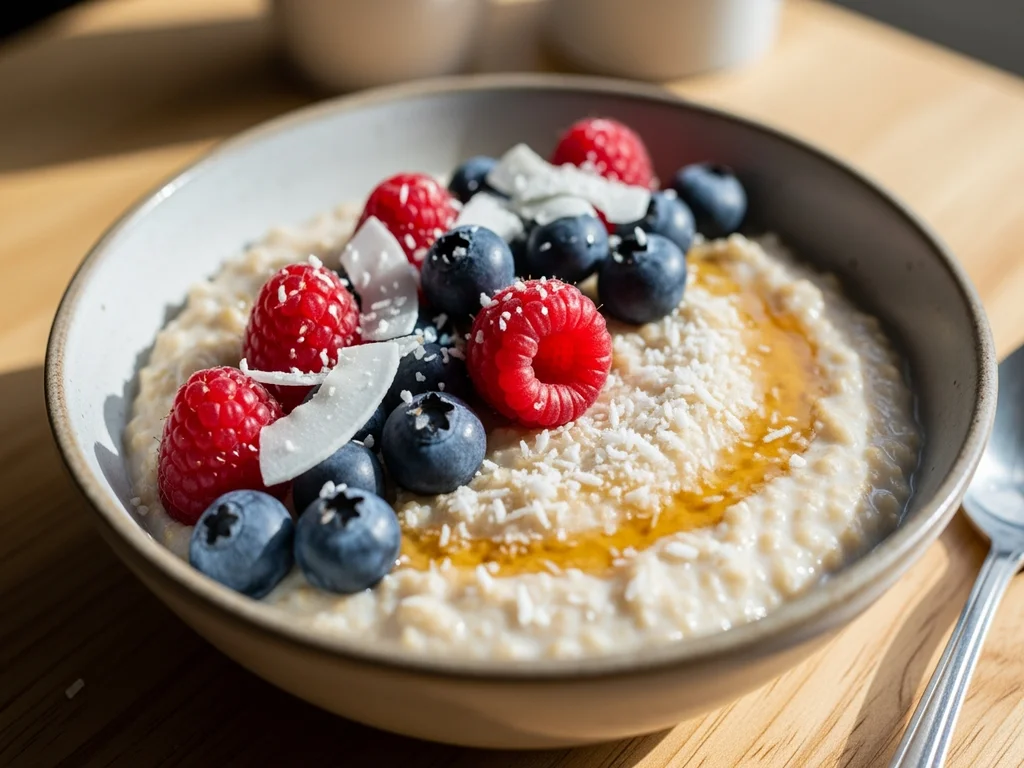 - Dodać syrop z agawy, wymieszać20 s/obr. 2. Przełożyć do 2 misek, udekorować płatkami kokosowymi, malinami, borówkami i ziarnami kakaowca. Owsiankę kokosową z malinami i borówkami podawać bezpośrednio po przygotowaniu jako śniadanie.
