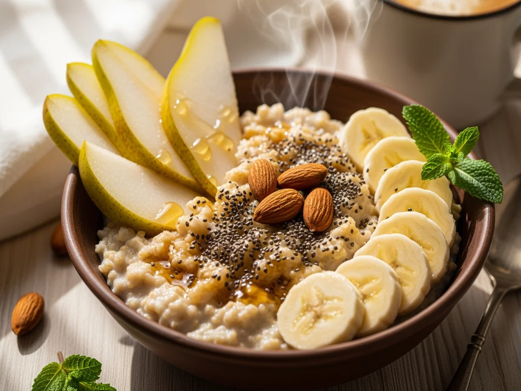 - Dodać oliwę, zmiksować30 s/obr. 10. Pozostawić w naczyniu miksującym do momentu, aż jego zawartość osiągnie temp. 37°C. Owsiankę z gruszką i bananem podawać bezpośrednio po przygotowaniu.