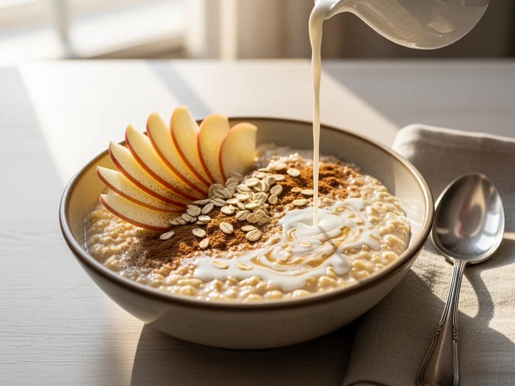- Owsiankę zbożową z jabłkiem i mlekiem podawać bezpośrednio po przygotowaniu.