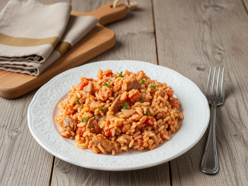 - Dodać ugotowany ryż, wymieszać10 s//obr. 4. Paprykarz à la szczeciński podawać po ostudzeniu jako pastę do pieczywa.