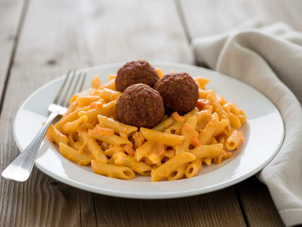 - Dodać połowę rozdrobnionego parmezanu i śmietanę, wymieszać20 s/obr. 3. Przełożyć do miski z ugotowanym makaronem, w razie potrzeby dolewając zachowaną wodę z gotowania, aby uzyskać odpowiednią konsystencję. Wymieszać za pomocą kopystki. Do miski dodać usmażone klopsiki, przemieszać i przełożyć na talerze. Pasta Vodka z wegetariańskimi klopsikami podawać bezpośrednio po przygotowaniu, posypane pozostałym rozdrobnionym parmezanem i udekorowane liśćmi bazylii.