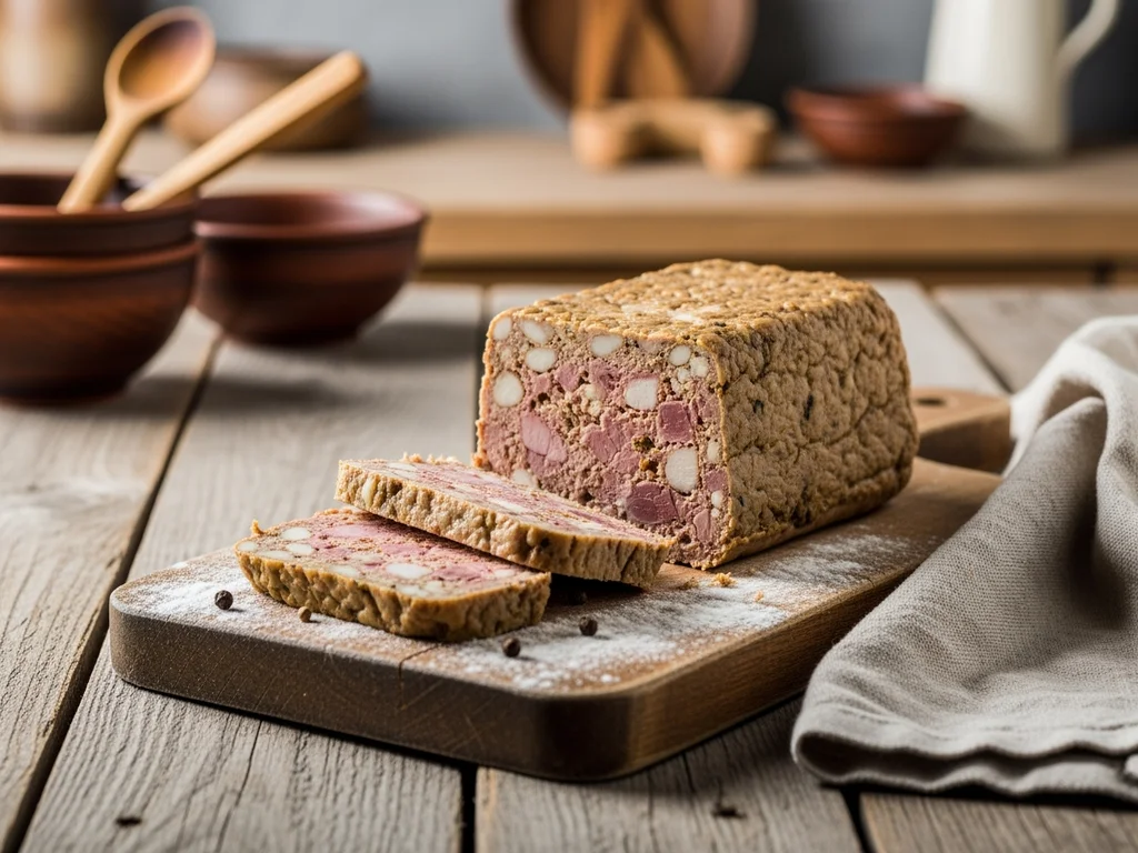 - Piec ok. 1 godz. (200°C), do momentu, aż wierzch się zrumieni. Wyjąć z piekarnika, odstawić do ostudzenia. Pasztet podawać pokrojony w ok. 1 cm plastry jako dodatek do pieczywa.