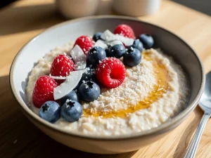 4. Piec 30-35 minut (180°C). Pieczoną owsiankę z borówkami i orzechami podawać bezpośrednio po przygotowaniu (patrz wskazówka) lub ostudzić i zapakować w formie lunchboxu.
