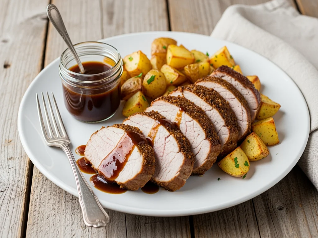 Pieczone polędwiczki wieprzowe z ziemniakami i sosem