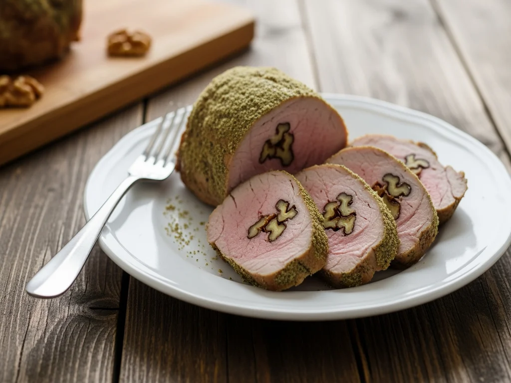 - Do naczynia miksującego ostrożnie wlać płyn powstały w naczyniu żaroodpornym podczas pieczenia i wodę, dodać puder grzybowy, mąkę i sól, gotować3 min/100°C/obr. 2. Sos przelać do sosjerki. Pieczony schab z orzechami i pudrem grzybowym podawać na gorąco, z dodatkiem gotowanych ziemniaków i wybranej surówki.