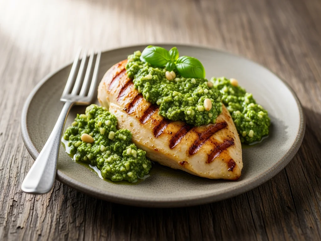 - Piersi z kurczaka podawać z jarmużowym pesto (patrz wskazówka).