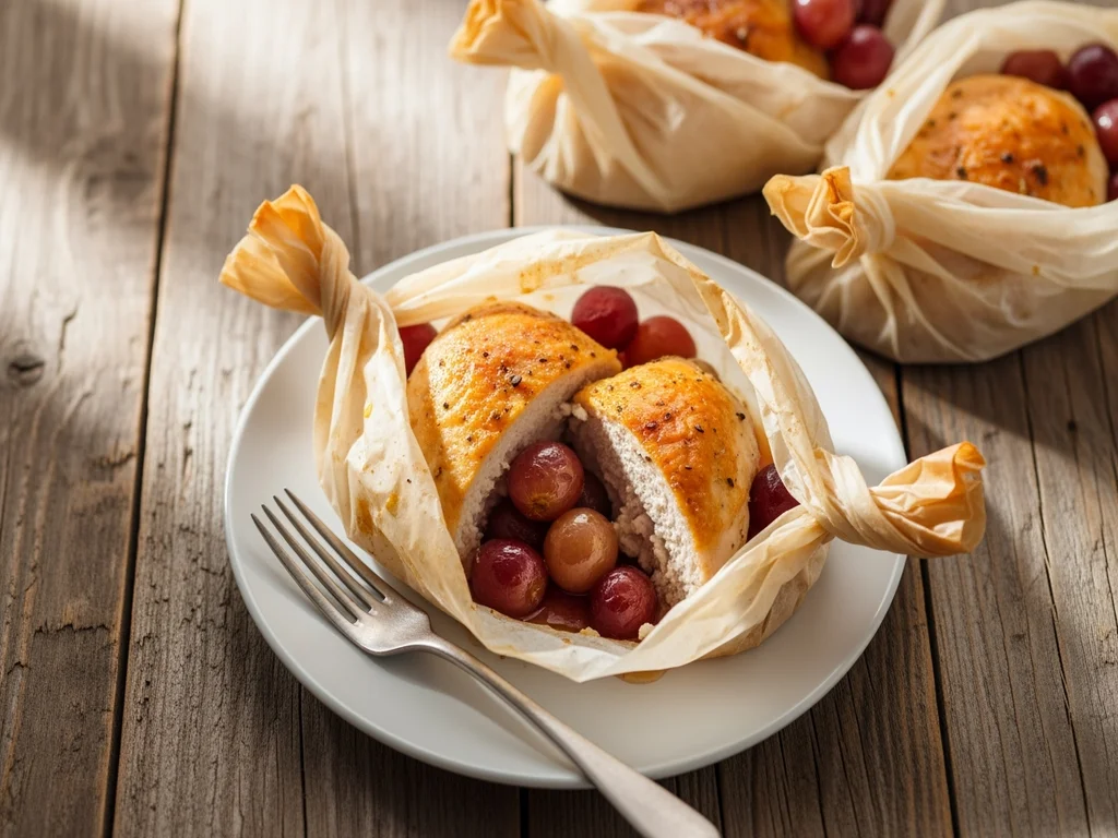 Piersi z kurczaka w papilotach z winogronami