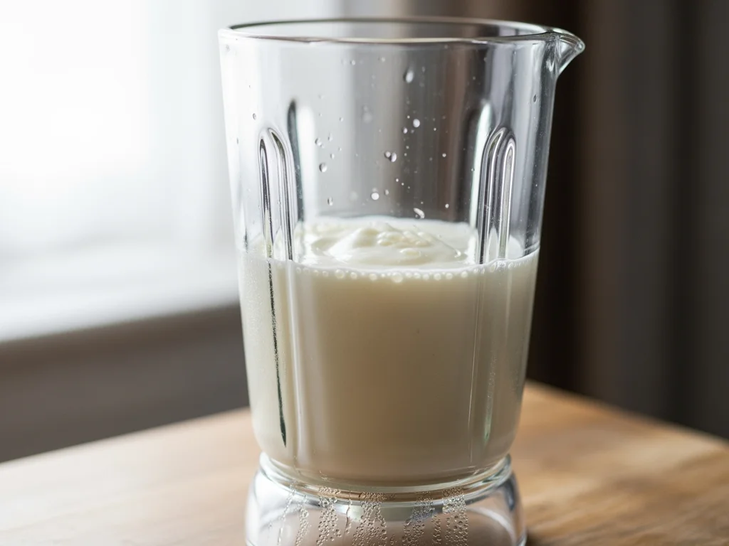 - Do czystego naczynia miksującego (patrz wskazówka) wlać mleko, dodać jogurt i cukier, wymieszać10 s/obr. 3.