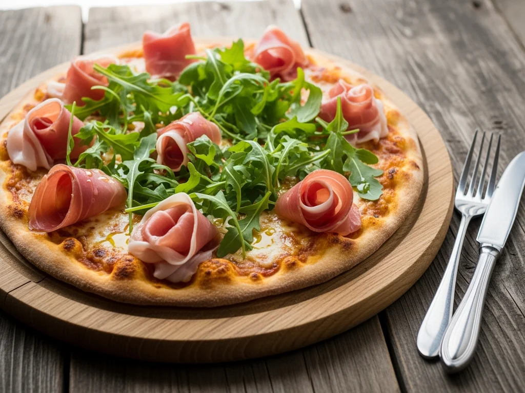 Pizza bezglutenowa z szynką parmeńską i rukolą