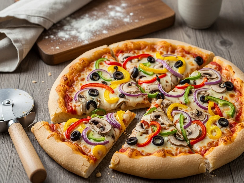 - Na cieście rozłożyć pomidory, na pomidorach ułożyć mozzarellę. Na wierzchu rozłożyć pokrojone i starte warzywa. Piec ok. 20 min (220°C). Pizzę z warzywami podawać na gorąco, oprószoną solą i pieprzem.