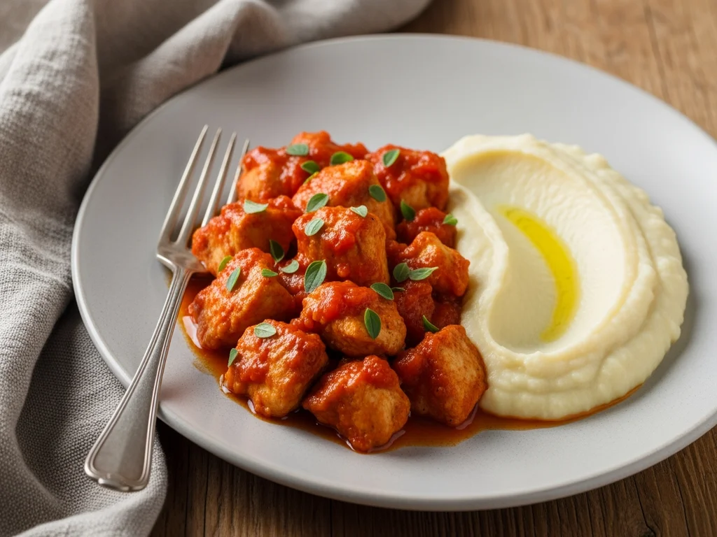 Pizzaiola z kurczaka z purée selerowo-ziemniaczanym