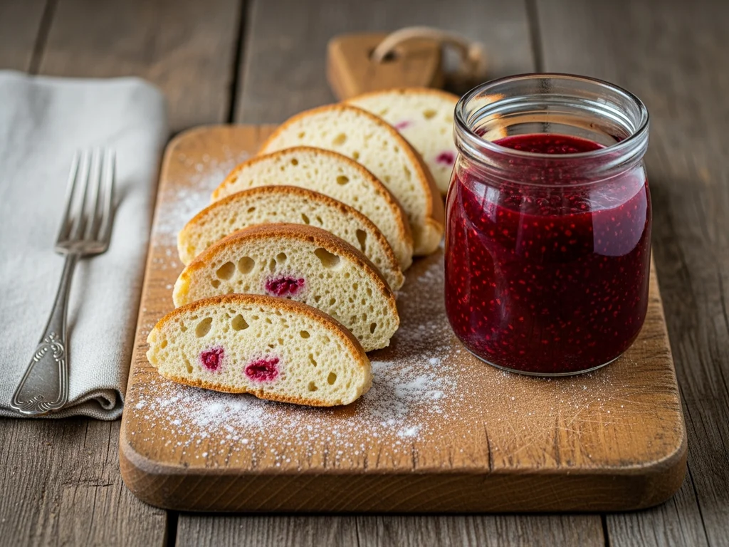 - Placki z chleba podawać z sosem malinowym bezpośrednio po przygotowaniu.