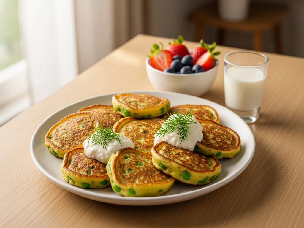 Placki z zielonym groszkiem i twarogiem (dla dzieci)