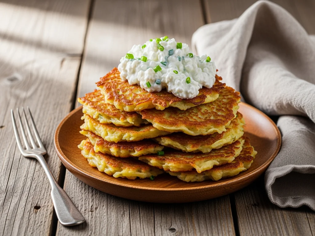 Placki ziemniaczane z twarogiem czosnkowym (plińce z pomoćką)