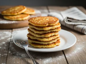 - Na patelni rozgrzać niewielką ilość oleju. Na dobrze rozgrzaną patelnię nakładać porcje ciasta tworząc placuszki (Ø 5 cm) o grubości ok. 0,5 cm, smażyć ok. 2 min z każdej strony. Usmażone placuszki odsączyć z nadmiaru tłuszczu na talerzu wyłożonym ręcznikiem papierowym. Czynność powtarzać z pozostałym ciastem, za każdym razem dolewając na patelnię niewielką ilość oleju. Usmażone placuszki podawać bezpośrednio po przygotowaniu z sosem jogurtowym.