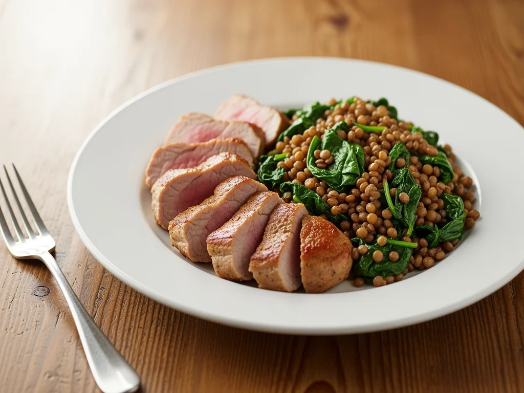 Polędwica wieprzowa i soczewica ze szpinakiem