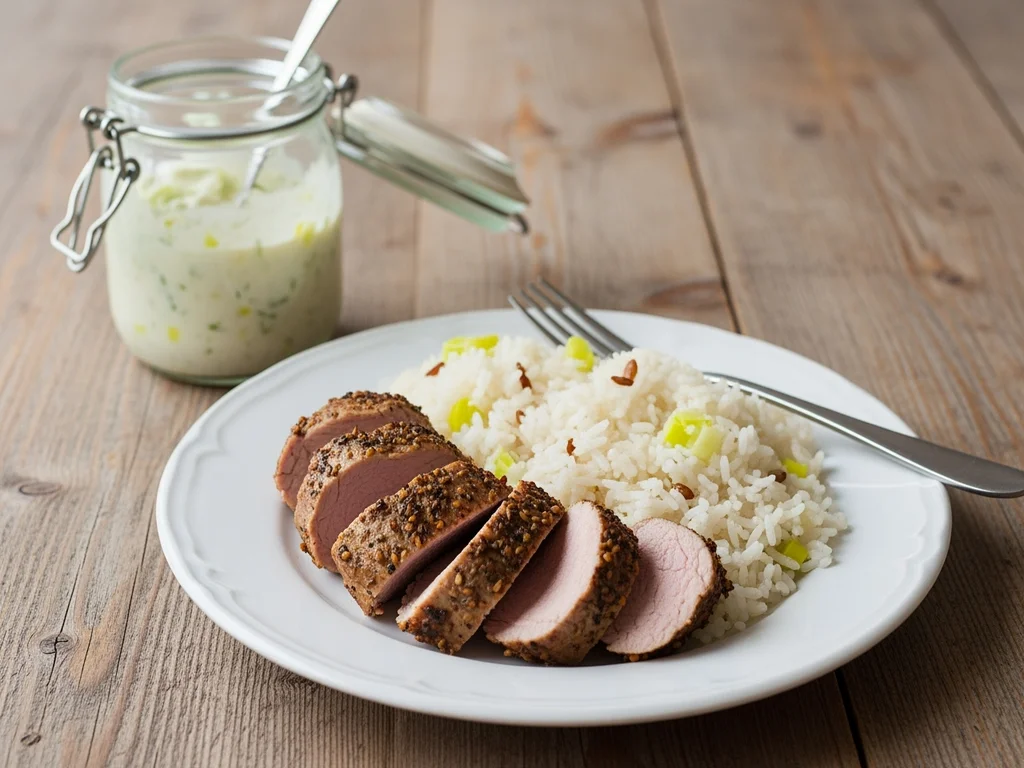Polędwiczka wieprzowa w sosie porowym z ryżem basmati