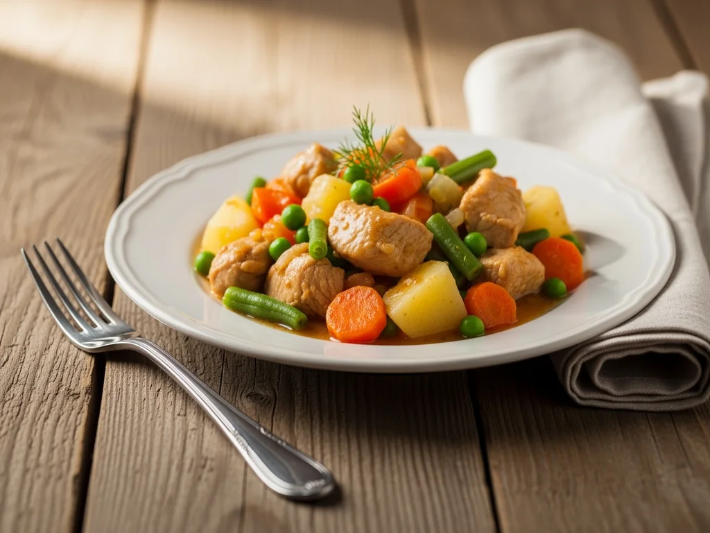 - Dodać ugotowane na parze warzywa, przemieszać kopystką, gotować1 min/100°C//obr. 1. Potrawkę z kurczaka z warzywami podawać na ciepło z dodatkiem ryżu lub ziemniaków.