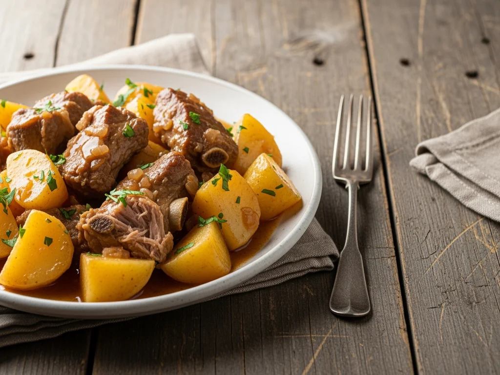 - Dodać ziemniaki, sól, gałkę muszkatołową, kmin rzymski, paprykę słodką, wymieszać kopystką tak, aby ziemniaki były przykryte sosem, zamiast miarki na pokrywę naczynia miksującego nałożyć koszyczek, gotować25 min/100°C//obr. . Sprawdzić stopień ugotowania ziemniaków, w razie potrzeby wydłużyć czas gotowania o5 min/100°C//obr. 1. Potrawkę z ziemniaków i żeberek podawać bezpośrednio po przygotowaniu.