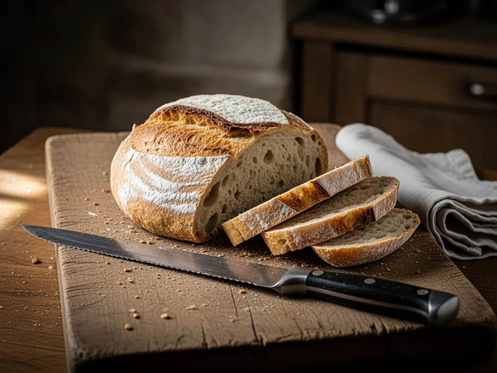 Pszenny rustykalny chleb na zakwasie (wyrastający przez noc)