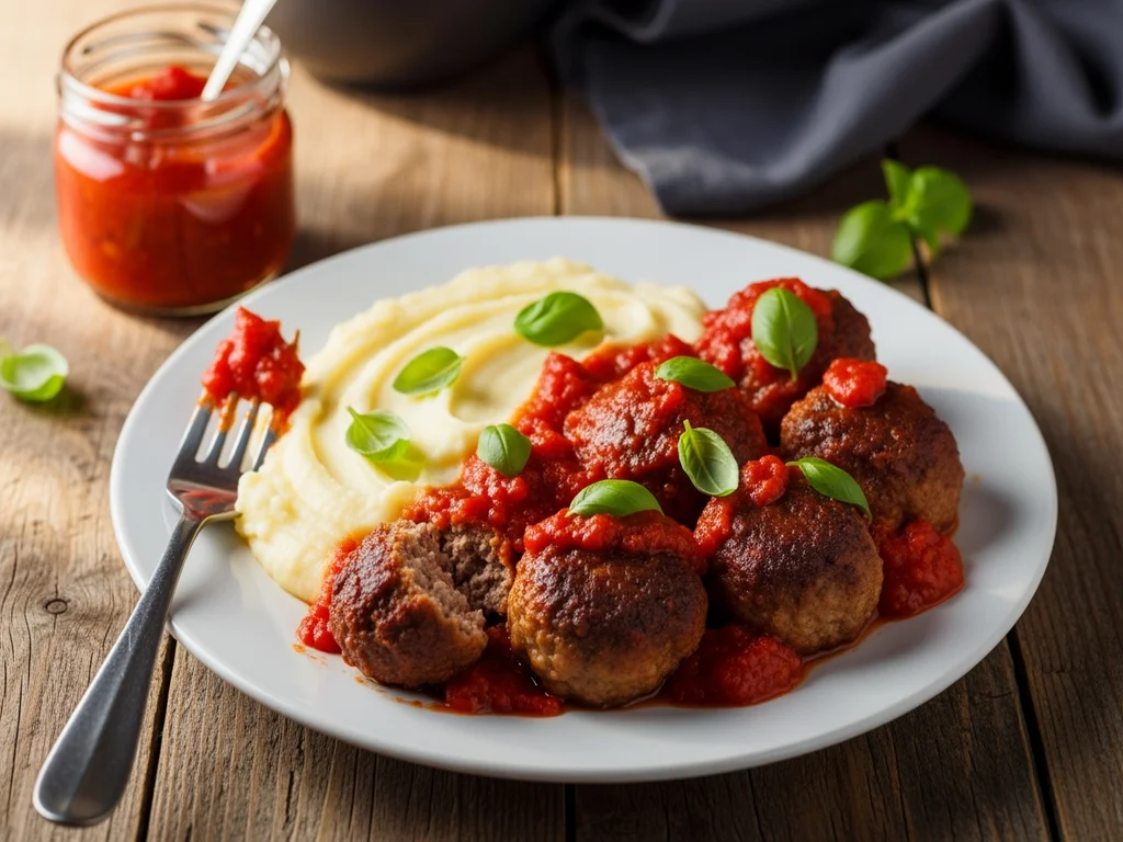 Pulpety w sosie pomidorowym z purée ziemniaczanym