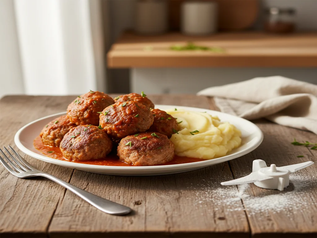 Pulpety w sosie pomidorowym z purée ziemniaczanym (z osłoną noża miksującego)