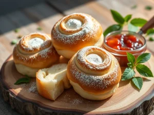 - Racuchy na żółtkach z rodzynkami w rumie podawać bezpośrednio po przygotowaniu, oprószone cukrem pudrem.