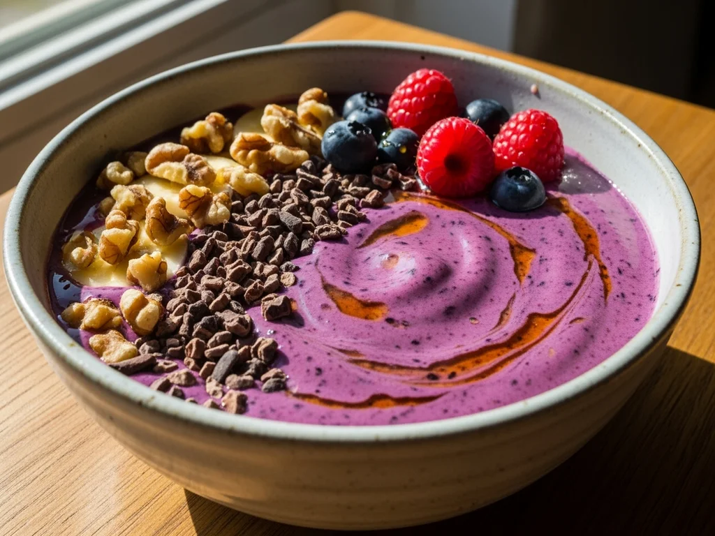 Smoothie bowl z orzechami i ziarnem kakaowca
