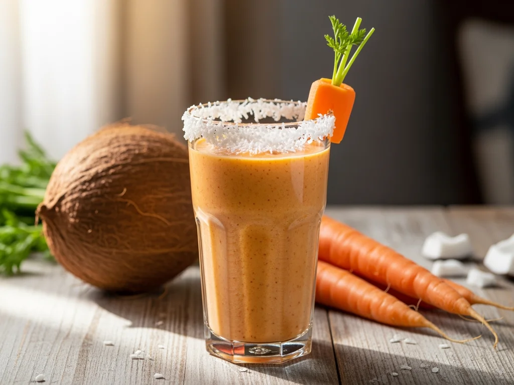 - Dodać jagody goji, granolę, jogurt, mleczko kokosowe, miód i kostki lodu, zmiksować1 min 30 s/obr. 10. Smoothie marchewkowo-kokosowe podawać bezpośrednio po przygotowaniu, udekorowane płatkami kokosowymi.