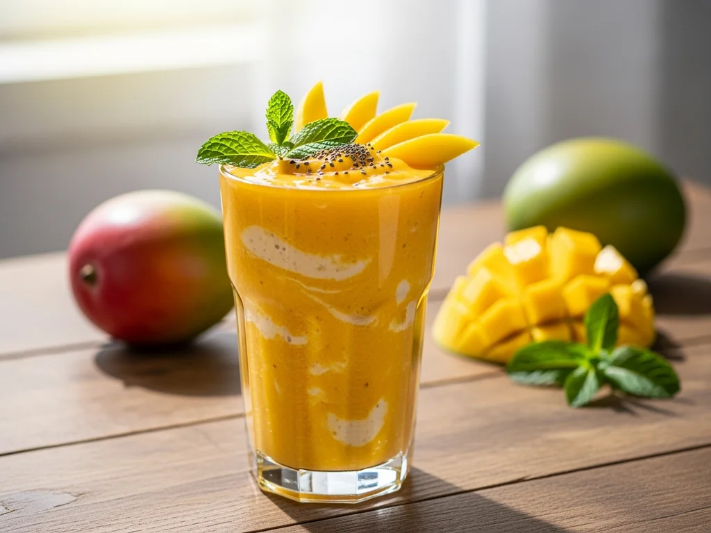 - Dodać anyż i sok, wymieszać6 s/obr. 6. Smoothie z mango podawać bezpośrednio po przygotowaniu.