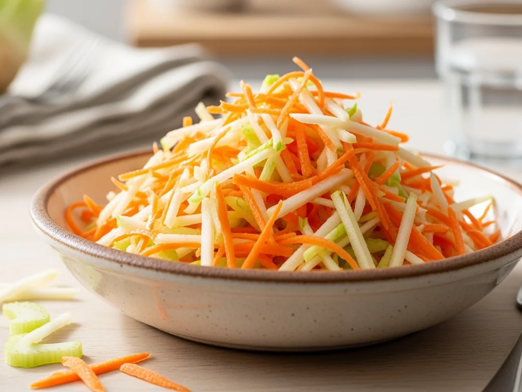 - Do szerokiej części podajnika włożyć odważone jabłko. Używając popychacza, zetrzeć grubo30 s/obr. 4. Wyjąć nakładkę krojącą wraz z trzpieniem z naczynia miksującego. Zawartość pojemnika przełożyć do miski, dodać jogurt, majonez, sól, pieprz i sok z cytryny, wymieszać kopystką. Surówkę marchewki, selera i jabłka podawać bezpośrednio po przygotowaniu jako dodatek do dań głównych.