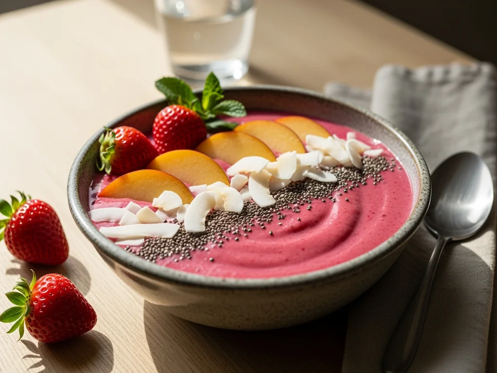 Truskawkowe smoothie bowl z kokosem i nektarynką
