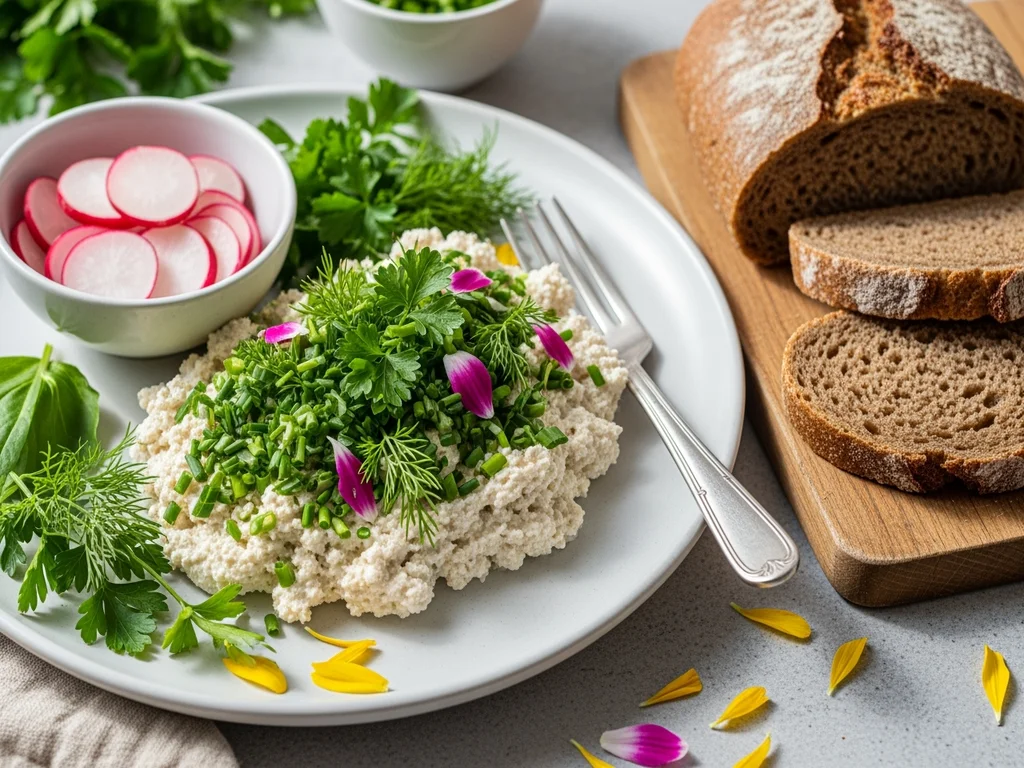 - Wiosenny twarożek z tofu podawać z dodatkiem pełnoziarnistego pieczywa.