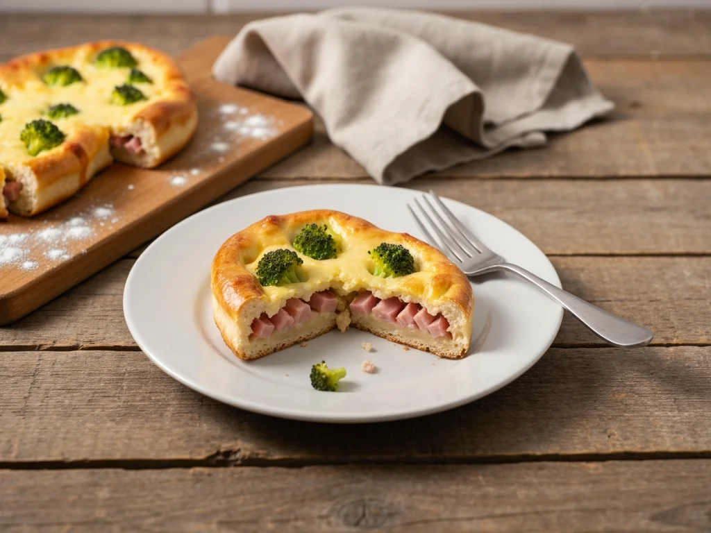 4. Zdjąć przystawkę Varoma, odstawić. Wstępnie podgotowany makaron odcedzić, następnie razem z brokułami i pokrojoną szynką umieścić w okrągłej formie kamionkowej „Anna” (patrz wskazówka), odstawić.