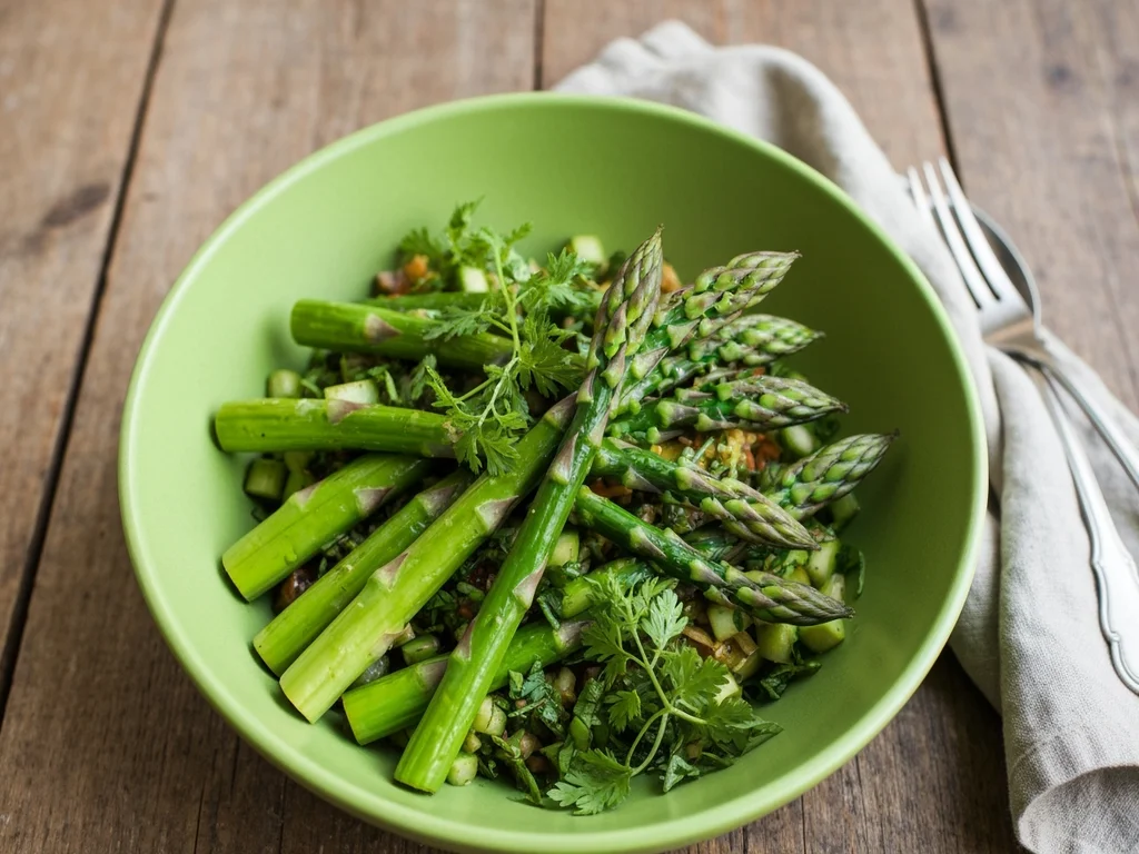 Zielona miska Buddy ze szparagami i dzikimi ziołami