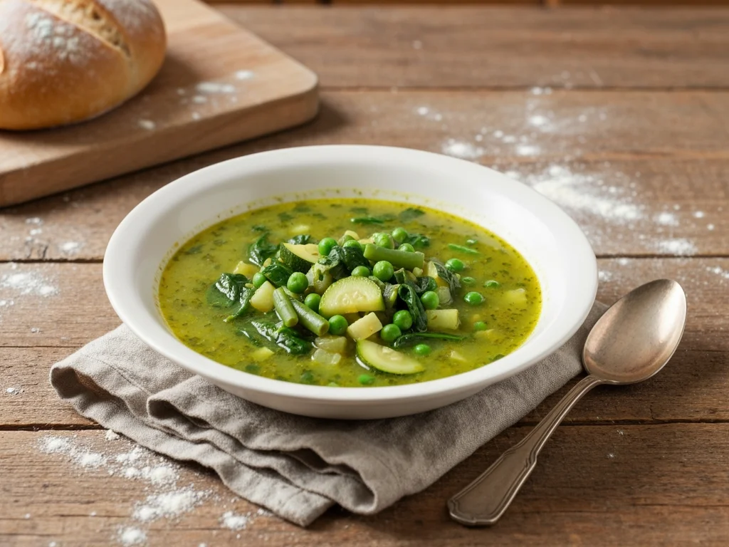 - Zieloną zupę minestrone podawać bezpośrednio po przygotowaniu, posypaną ziołowym parmezanem.