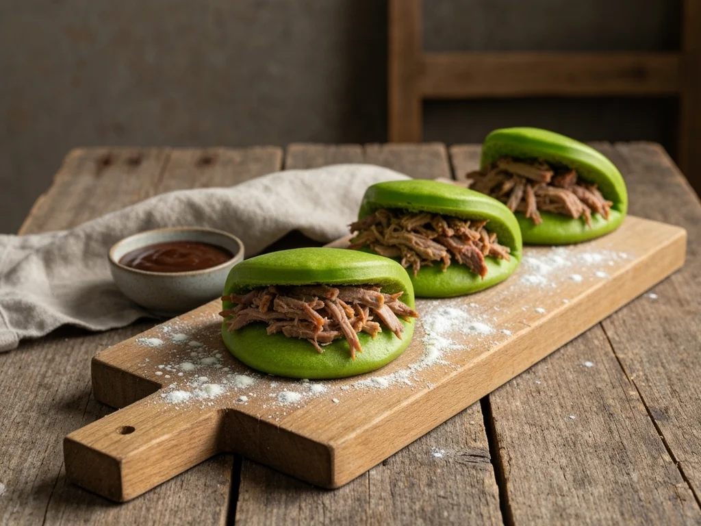 - Dodać kaczkę, powidła, wodę, sos sojowy, miód, ocet jabłkowy, przyprawę 5 smaków i pieprz cayenne, nałożyć przystawkę Varoma z bao, gotować na parze20 min/Varoma//obr. 1. Zdjąć przystawkę Varoma, odstawić. Zawartość naczynia miksującego rozdrobnić4-6 s//obr. 4. Przełożyć do innego naczynia. Do środka każdej bułeczki włożyć 2-3 kępki roszponki, ok. 2 łyżki szarpanej kaczki i porcję ogórka. Wierzch udekorować świeżym szczypiorkiem i plasterkami chili. Zielone bao z szarpaną kaczką podawać bezpośrednio po przygotowaniu.